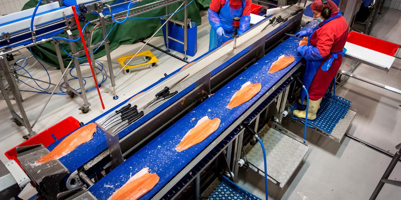 Na empresa norueguesa Lerøy Aurora Salmon 300 toneladas de salmão são processadas todos os dias e, às vezes, no pico da produção a estação só pára por 2,5 horas em um período de 24 horas.