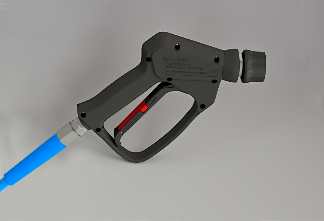 Uma empunhadura ergonômica na mangueira durante a limpeza é essencial para evitar esforço excessivo da equipe de limpeza e oferecer as melhores condições para a realização de um bom trabalho.