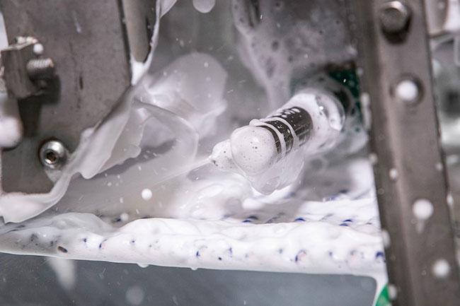 Criamos um sistema de limpeza automatizado especificamente destinado à limpeza e saneamento de esteiras transportadoras na indústria de alimentos e bebidas. Um controlador opera as sequências de limpeza pré-programadas e garante uma limpeza eficaz e sistemática com o mesmo resultado de limpeza a cada vez.