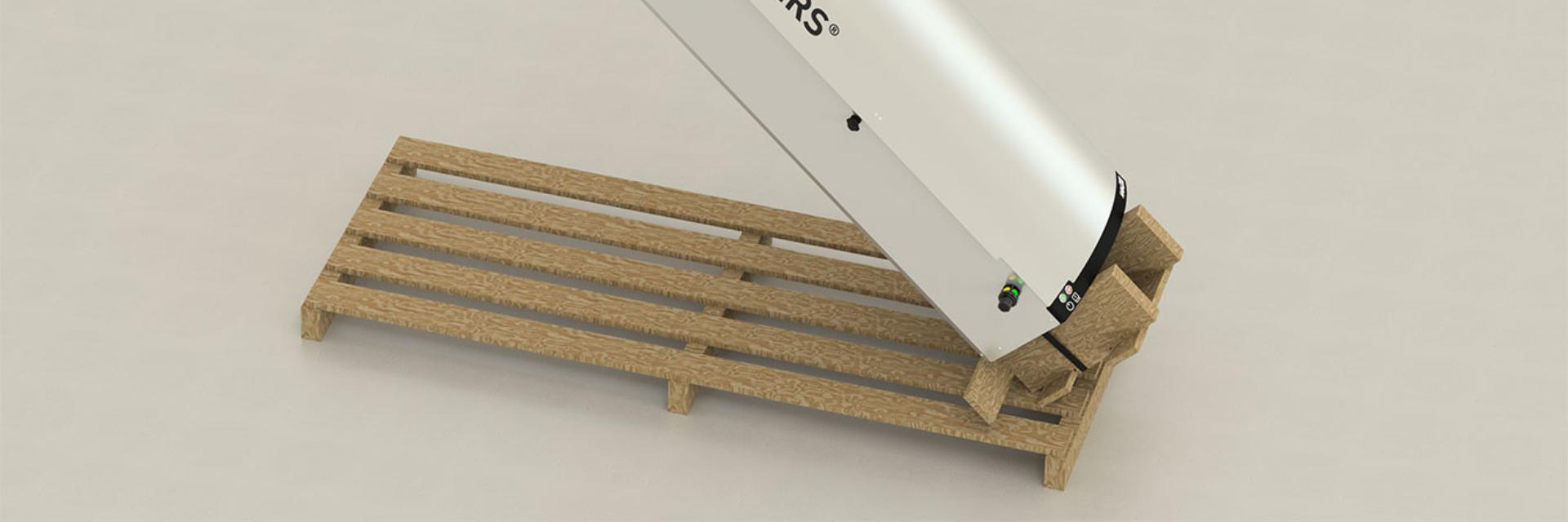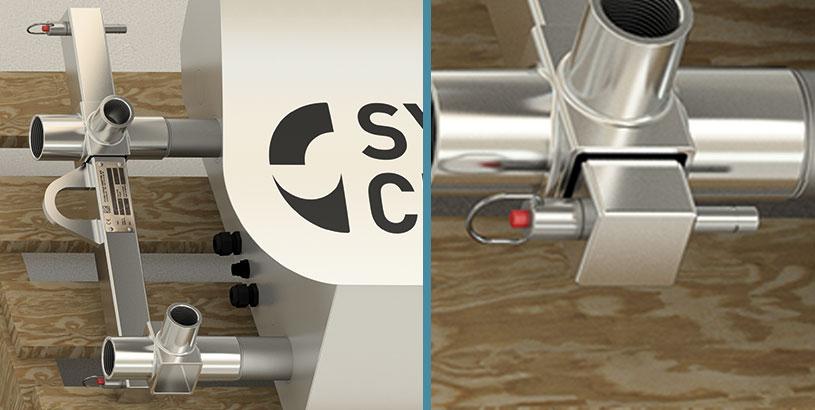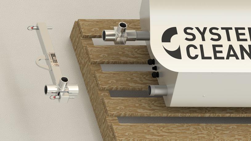Sua nova unidade System Cleaners é enviada em um palete. Para montá-la em um suporte de parede ou rack de piso, recomendamos o uso do suporte de elevação System Cleaners (Item nº 96-010500). O suporte de elevação se encaixa nos tubos de entrada/saída.